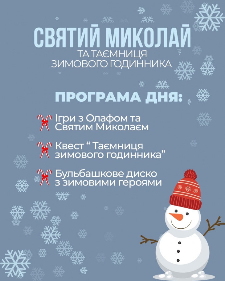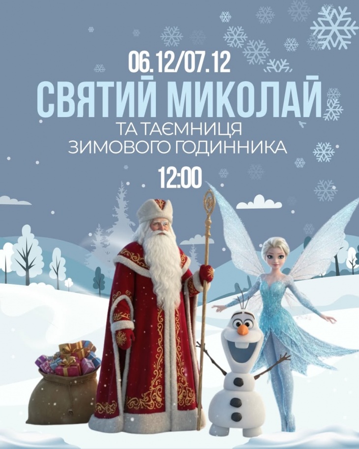 5 та 6 грудня запрошуємо малечу поринути у казковий світ разом із Миколаєм, Олафом та Льодовою феєю!