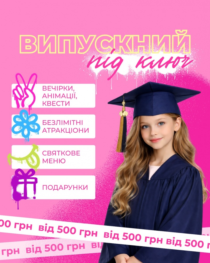 Хочете подарувати дітям яскраве, емоційне та по-справжньому святкове завершення року? Ми підготували кілька пакетів, щоб кожен випускний став особливим.