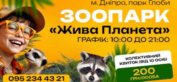 Запрошуємо шкільні групи, дитячі садки та організовані колективи до нашого зоопарку "Жива планета" в парку Глоби, місто Дніпро!