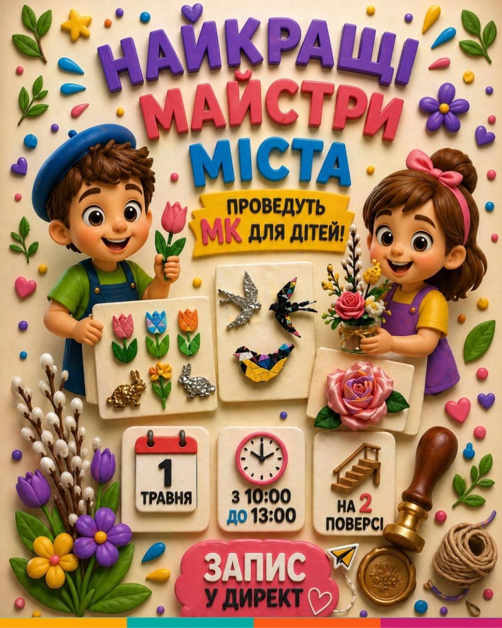 1 травня з 10:00 до 13:00 на 2 рівні МОСТ-сіті буде справжня творча подія для дітей.