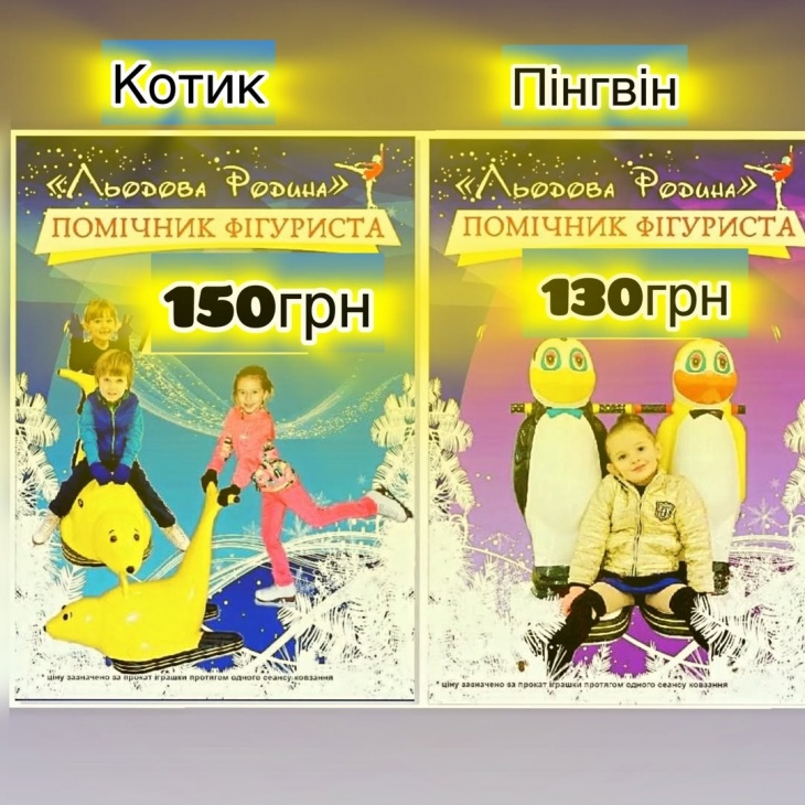 Для діток та дорослих, хто тільки вчиться стояти на ковзанах, є помічники. А ще тут можна покататися на тюбах.