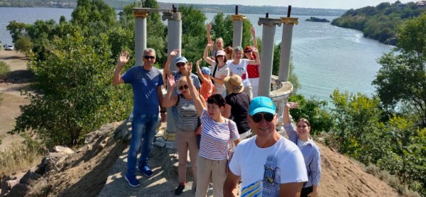 8:30 – від’їзд групи від залізничного вокзалу комфортабельним автобусом. Одна година їзди – і ми з вами вже милуємось величчю дніпровських вод та круч по дорозі, де води Дніпра всього лише в трьох метрах від колес нашого автобусу.